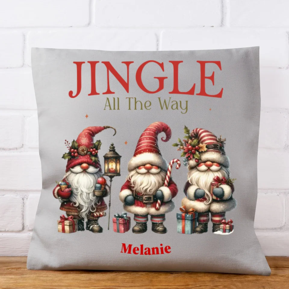 - Wunderschönes Design: Das Kissen zeigt ein charmantes Weihnachtsmotiv mit drei fröhlichen Weihnachtswichteln, die in festlicher Stimmung sind.